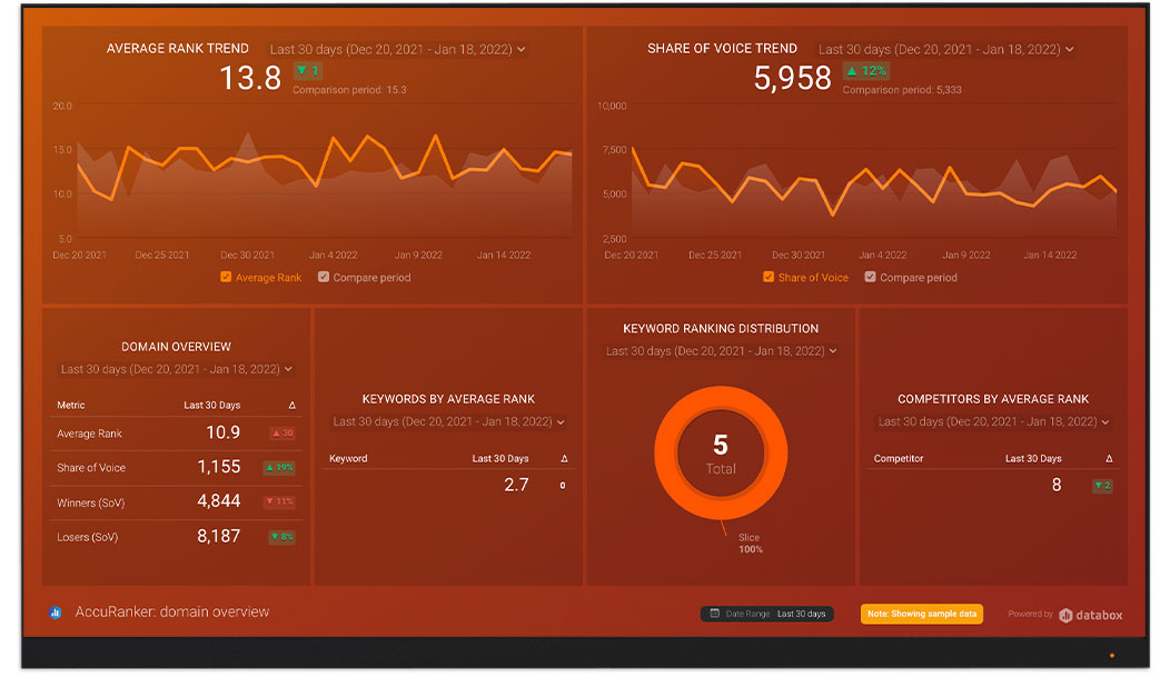 AccuRanker is a powerful keyword rank tracking tool that helps businesses monitor their search engine rankings accurately and in real-time. With advanced features, competitor analysis, and intuitive dashboards, it enables businesses to optimize their SEO strategies, track keyword performance, and gain insights to improve their search engine visibility and organic traffic.