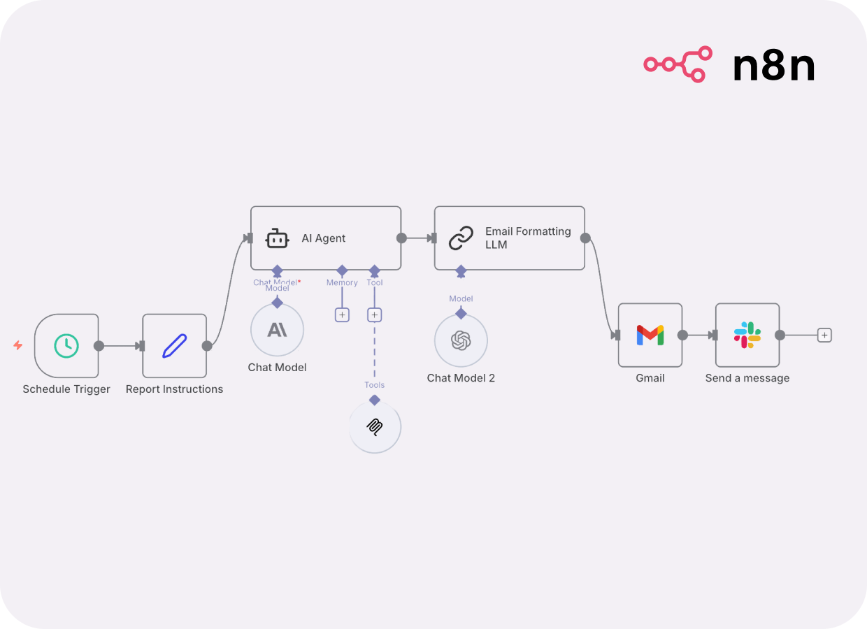 Absolutely. Use n8n or similar tools to schedule queries, format results, and send reports to Slack, email, or any destination—fully automated.