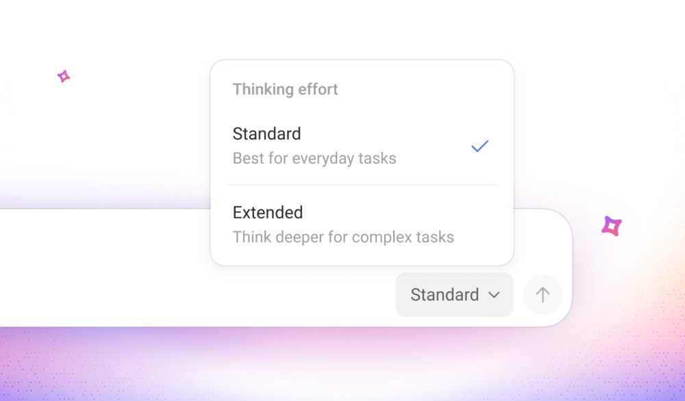 Switch between Standard mode for everyday tasks and Extended mode for deep analysis on more complex questions. You stay in control of the speed, depth, and cost of every response — so you’re always getting what the moment actually calls for.