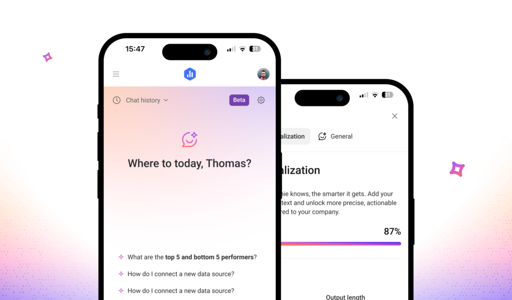 Genie is available on mobile, so you can check performance, ask questions, and explore insights wherever you are — before a meeting, between calls, or on the go.