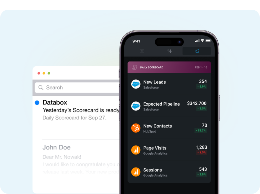 Yes, using our Databox mobile app for iOS and Android. And, you can receive your daily scorecards, weekly summaries, and performance alerts directly to your mobile phone.