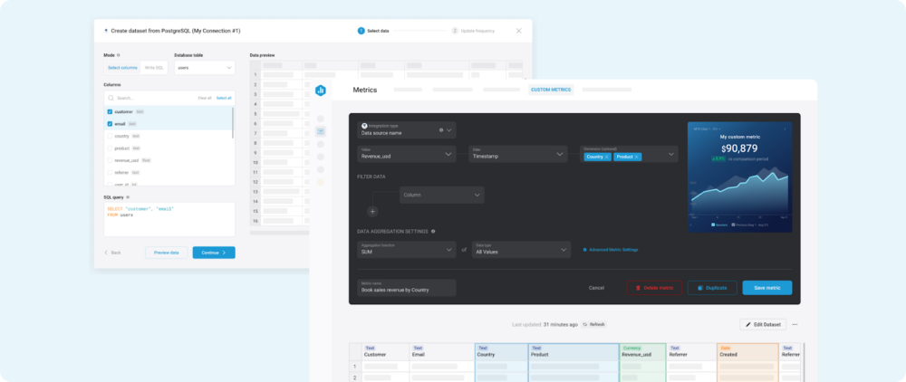 | Custom Metrics | Build custom metrics with multiple dimensions, no SQL needed | Typically requires advanced formulas or SQL |
