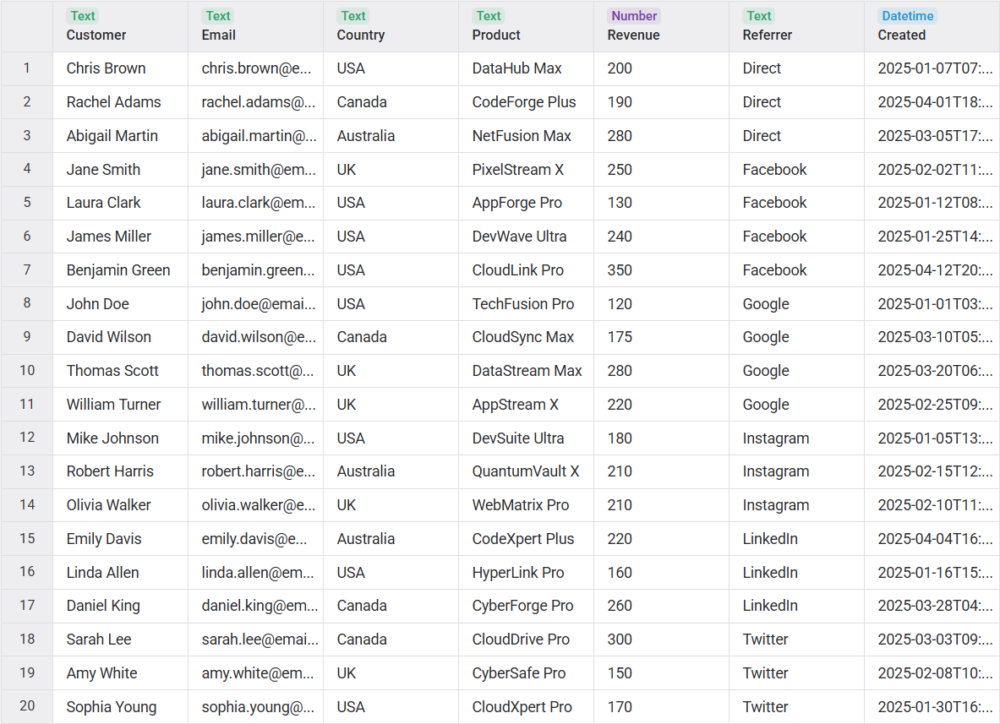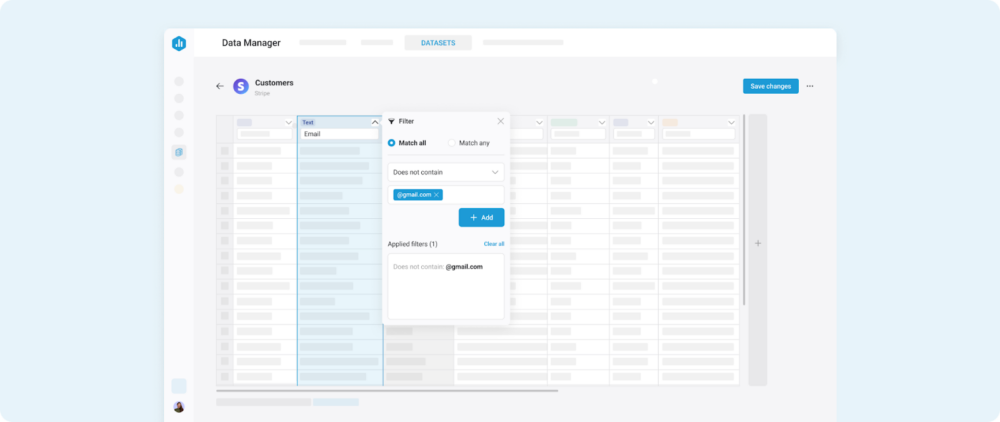 How to do it in Databox : Apply column‑level filters right inside the Dataset editor—no SQL required. For example, exclude rows where Email does not contain @gmail.com to keep B2B lead data pristine.